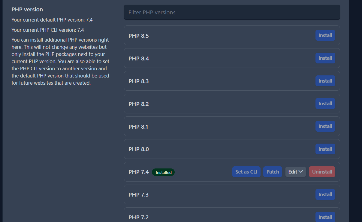 I remember the last time i installed php version it was i just have to click on install after 2 to 5 minutes i get notification that php version is installed correctly. but unfortunately now it does nothing.