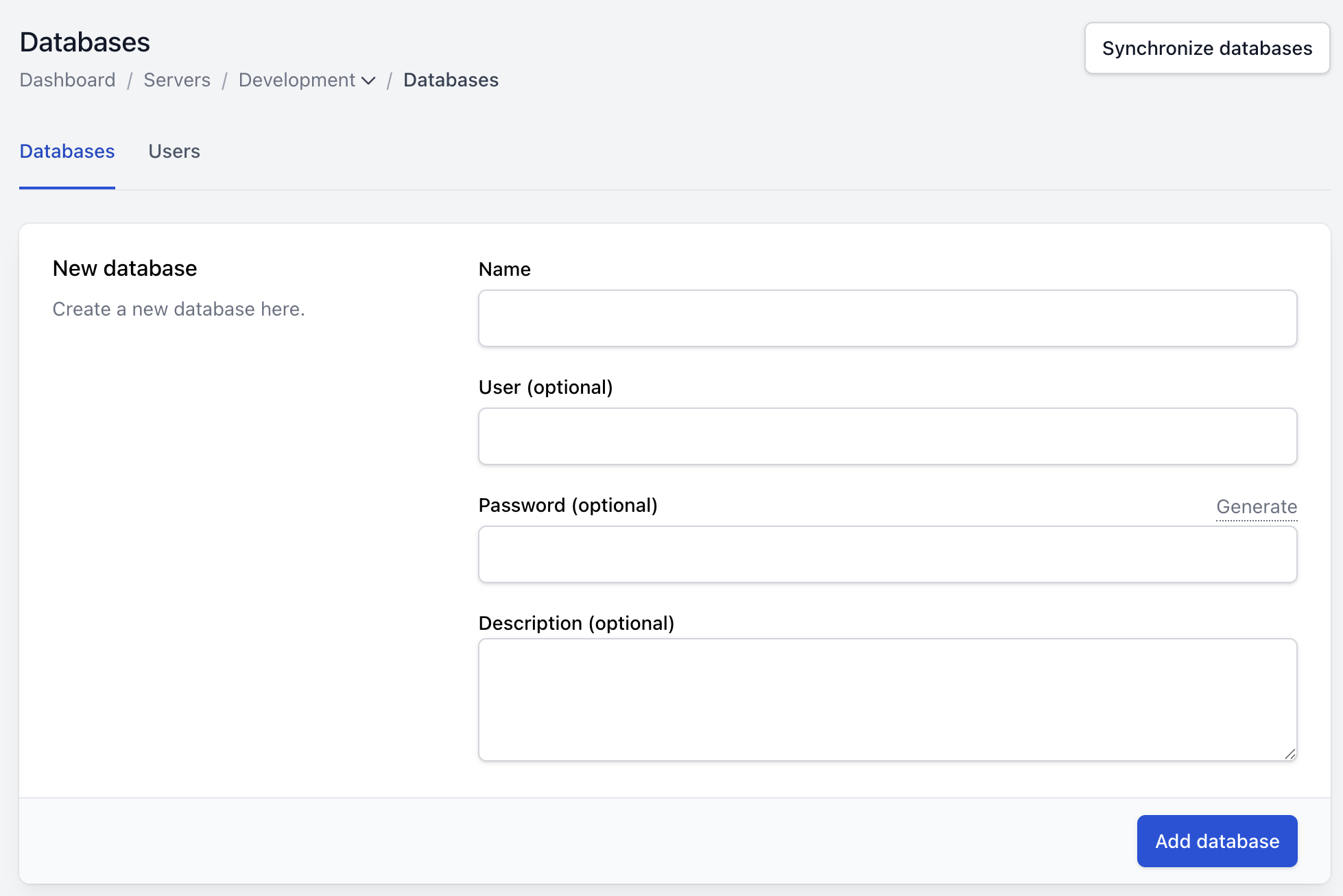 Right now if I create a server with MySQL but then later want to create a Postgres DB I have to manually create them via commands