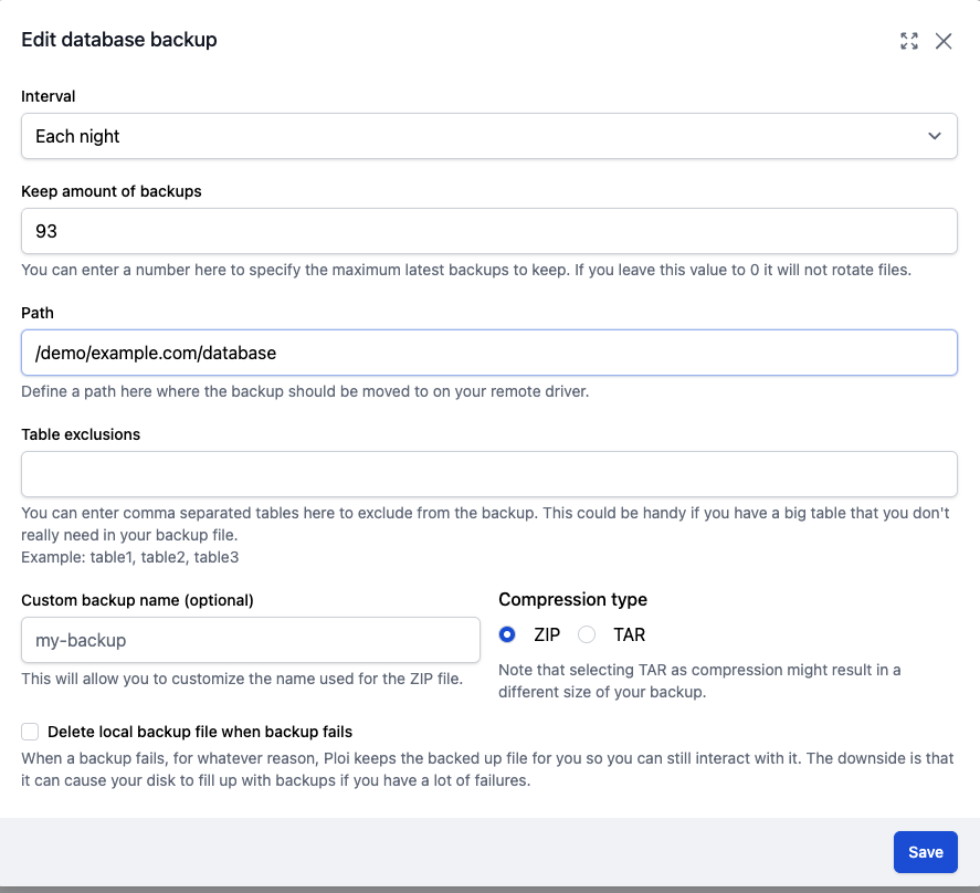 After creating a backup (file or database) we can't change all options we've set when creating the backup job. It would be great if all could edited afterwards. Example: change the zip-password or select a new backup-config